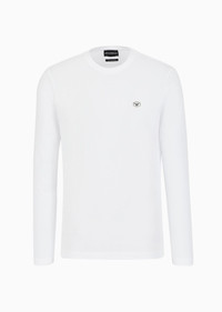 This crew-neck jumper with a micro logo patch on the chest is made from luxury Supima – a high-quality Pima cotton offering incredible softness, durability and sheen. This item belongs to the Essentials clothing selection, the Emporio Armani capsule collection that is an evergreen statement of style: an ongoing collection with clean, well-designed shapes for a wardrobe that meets the demands of any season. These “essential”, versatile pieces are a must-have for the male wardrobe. Product Code: 8N1TR11JRGZ10100 Details Composition 100% Cotton Jersey Supima cotton Crew neck Long sleeves Front logo patch Fitting The model is 188 cm tall and is wearing size 48/M (Italian Size)