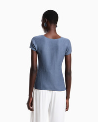 Round-neck T-shirt made from cosy stretch jersey. The fabric is characterised by a unique embossed, three-dimensional weave that bestows refinement and texture to the style. Jersey Rounded neckline Short sleeves Product Code: EW001995AF16172U9302
