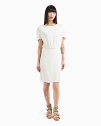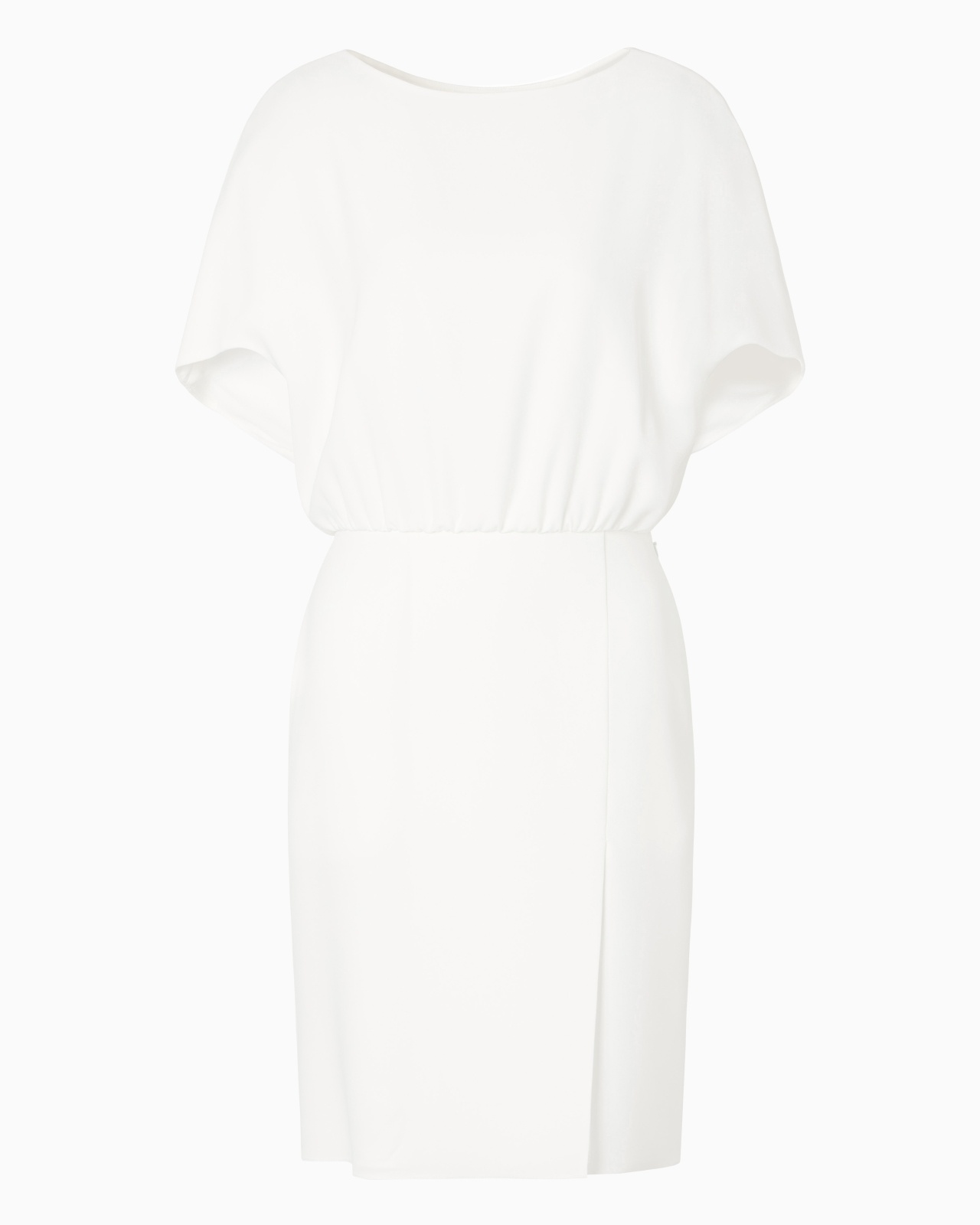 Dress with a rounded neckline, made from flowing, lightweight technical cady that gently drapes across the body, offering an impeccable look to any silhouette. A feminine design with fluid textures for a dress that takes you from morning to night with a nonchalant, understated elegance that flows naturally over the silhouette. The skirt with an overlapping slit at the front enhances the refined style. Tech cady Rounded neckline Short batwing sleeves Gathered waist Skirt with slit Side closure with zip and press studs Partially lined Product Code: EW000827AF10206U0006