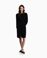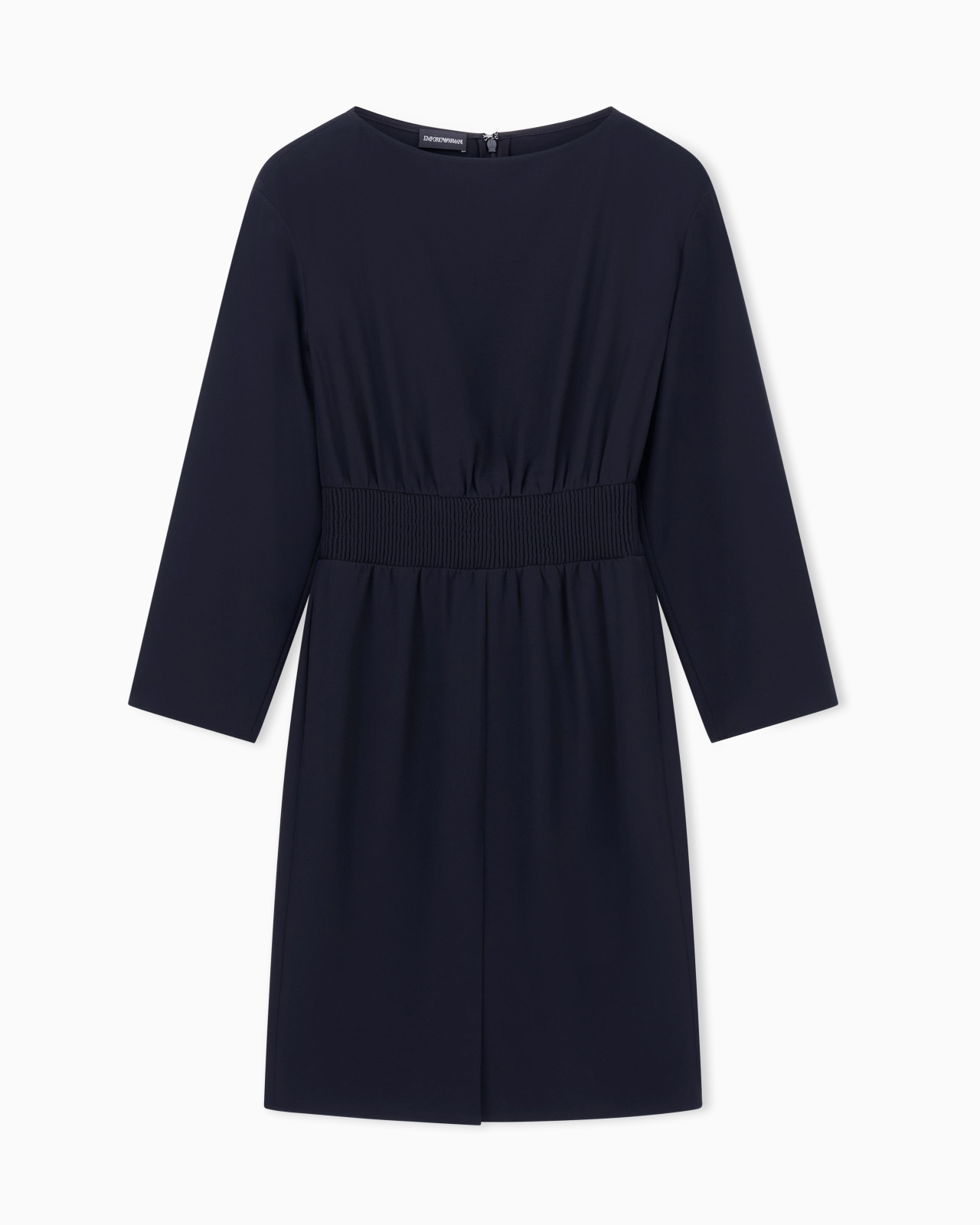 Dress with a boat neckline, made from flowing, lightweight technical cady that gently glides across the figure, offering a flawless look to any silhouette. The style is distinguished by the embossed effect elasticated detail that highlights the waist. Designed to respond to the requirements of the well-dressed woman who divides her time between a myriad of tasks. Technical cady Boat neck Long sleeves Elasticted waist detail Front slit Back zip and hook closure Product Code: EW001718AF10206UC001