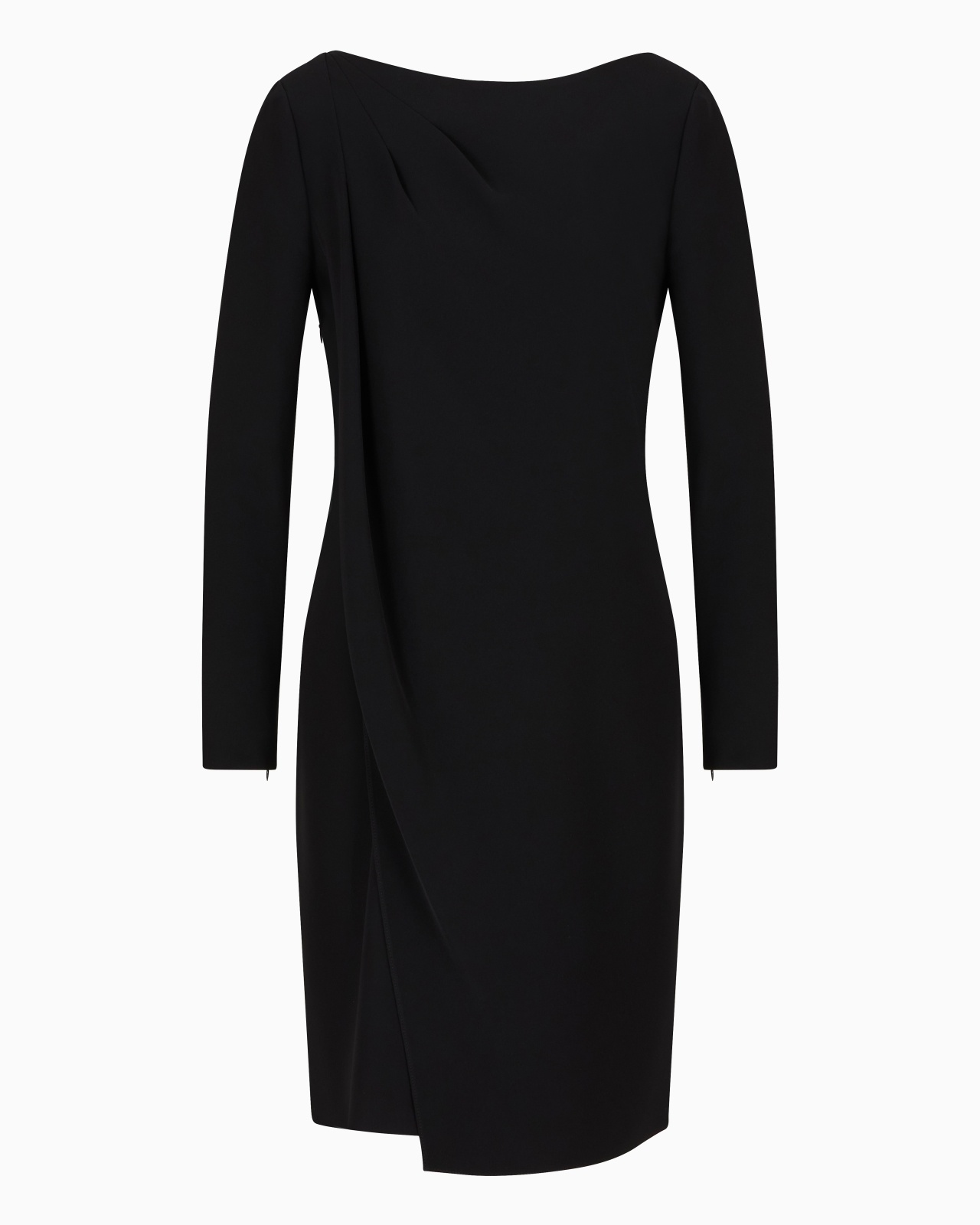 Round-neck dress with a distinctive front panel construction embellished with pleats on the shoulder. Made of flowing, lightweight techno cady that gently brushes against the skin to ensure a flawless look on any silhouette. A feminine design with fluid textures for a dress that takes you from morning to night with a nonchalant, understated elegance that flows naturally over the silhouette. Length: 80 cm Tech cady Rounded neckline Long sleeves Cuffs with invisible zips Concealed side zip Partially lined Product Code: EW000829AF10206UC001