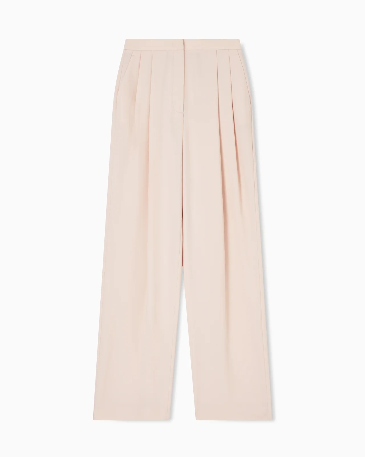 Trousers with double pleat at the waist made of gabardine which enhances the essential lines. A sophisticated design that enhances the silhouette with comfort and style, reinterpreting a classic of the female wardrobe. Technical gabardine Waist pleats Fastening with zip, press stud and back button Side pockets Product Code: EW003346AF20193U4128
