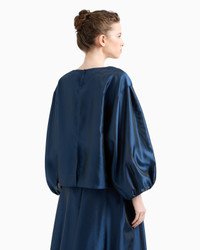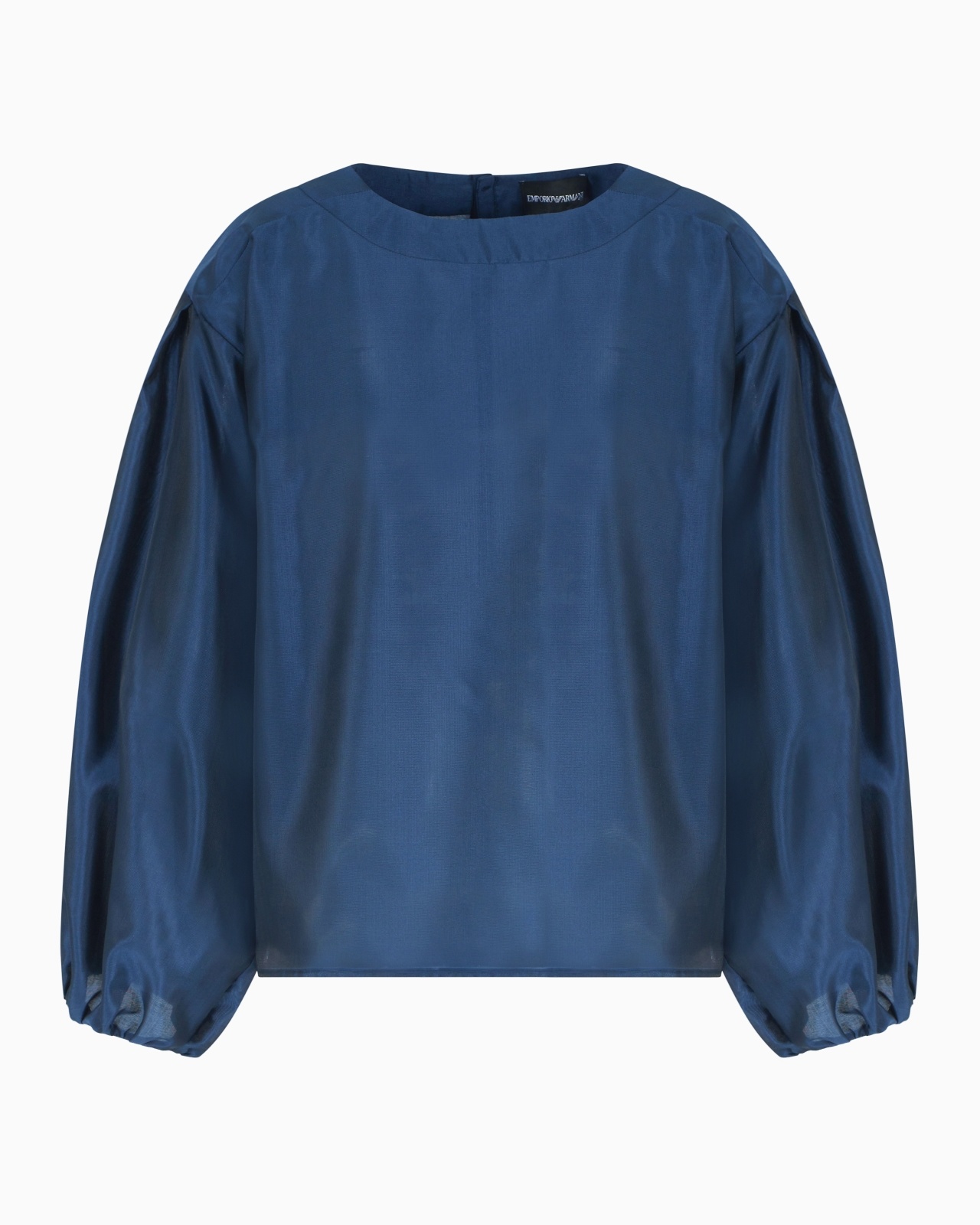 Blouse with wide long sleeves, a round neckline and small button closure, made of technical muslin, a fabric that adds sheen to the garment. The perfect style to complete daytime and eveningwear looks. Technical muslin Rounded neckline Long sleeves Gathered cuffs Back button closure Slit at the back Unlined garment Product Code: EW001430AF16041UB096