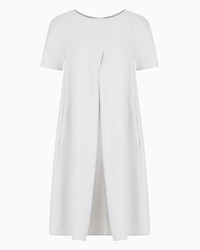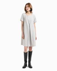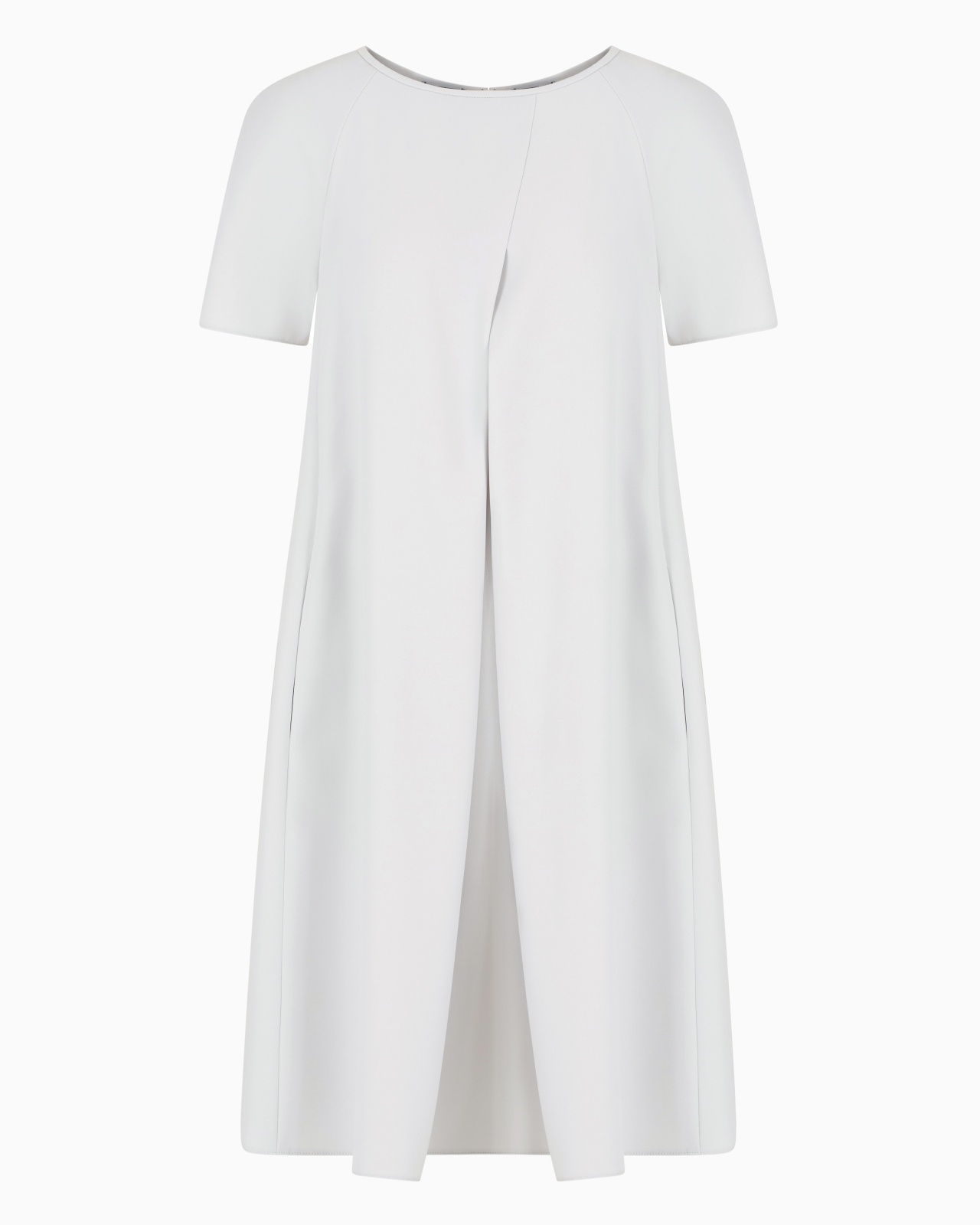 Short-sleeved flared dress with a large godet pleat at the front. Made of flowing, lightweight techno cady that gently brushes against the skin to ensure a flawless look on any silhouette. A feminine design with fluid textures for a dress that takes you from morning to night with a nonchalant, understated elegance that flows naturally over the silhouette. Tech cady Flared style Rounded neckline Short sleeves Side welt pockets Oversized godet pleat Back concealed zip Product Code: EW000831AF10206U8011