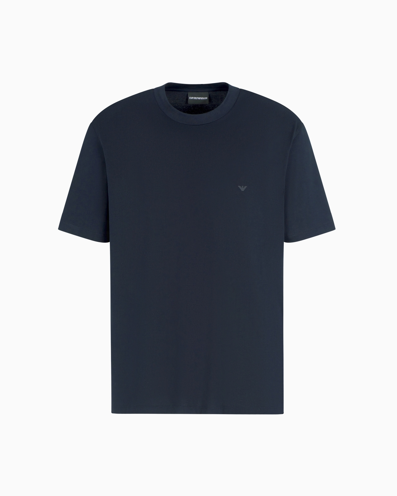 Pure cotton jersey crew-neck T-shirt with matching-tone iconic micro eagle on the chest. The item belongs to this season’s Travel Essentials collection, the identity and personality of which are defined through a concept of travelling light. Travel in comfort with a dynamic wardrobe transformed through innovative cutting and materials: clothing and accessories designed for performance and leisure. The SS25 selection is crafted for city living, centring the urban traveller who likes to explore both the world and their home city, highlighting the philosophy of the Emporio Armani man who is continuously on the move. Regular fit Jersey Crew neck Short sleeves Front micro eagle Product Code: EM000983AF13669UB118