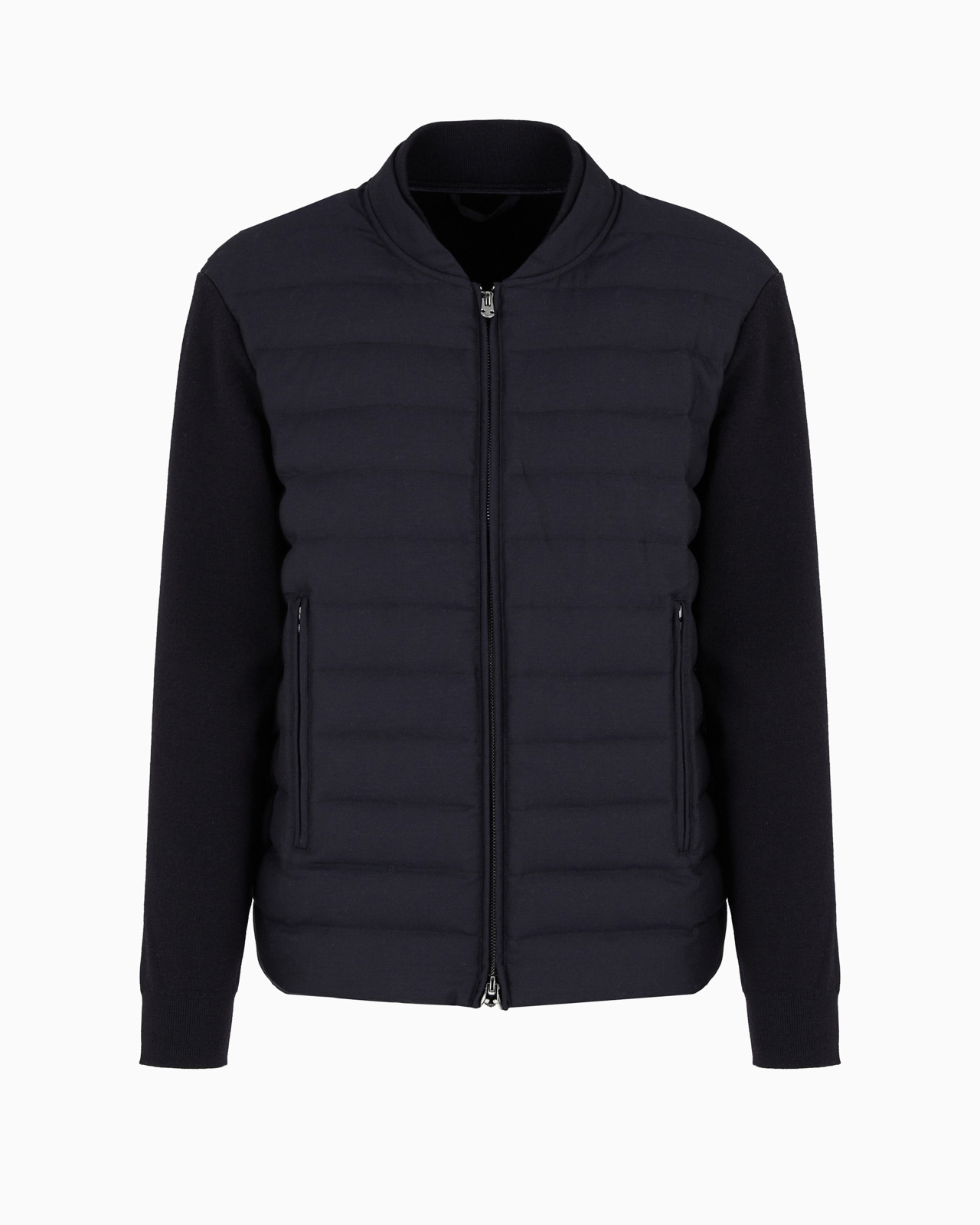 Blouson with plain-knit sleeves and back, with padded, quilted insert in a virgin wool-blend technical fabric on the front. The item belongs to this season’s Travel Essentials collection, the identity and personality of which are defined through a concept of travelling light. Travel in comfort with a dynamic wardrobe transformed through innovative cutting and materials: clothing and accessories designed for performance and leisure. The focus for the AW24 selection is wool yarn and its technical variations, created thanks to the refined blends of different wools, always alternated with nylon pieces. The capsule collection can also be worn in an urban setting and not just when travelling, highlighting the philosophy of the Emporio Armani man who’s always on the go. Product Code: EM000128AF104581UB118 Details Composition 70% Virgin Wool 30% Polyester Weft in knit Padded insert in technical fabric Zip closure Long sleeves Side pockets with zip Collection logo patch Fitting The model is 188 cm tall and is wearing size 48/M (Italian Size)