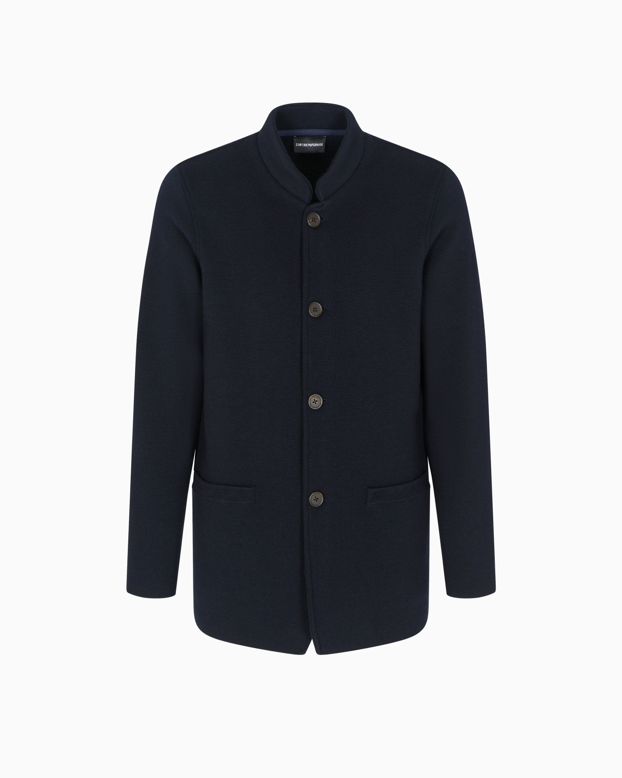 Blazer with a guru collar and front buttoning, made of a Milano-stitch knit fabric. The piece belongs to the Travel Essentials Autumn/Winter 2025 capsule collection. Milano-stitch knit Guru collar Front buttoning Long sleeves Side pockets Product Code: EM001961AF18173UB118