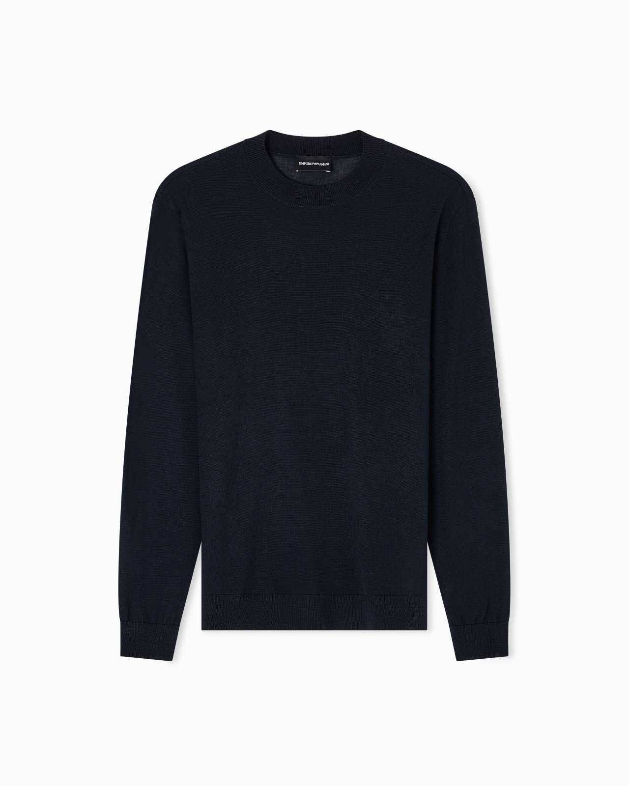 Plain-knit, pure virgin wool, crew-neck jumper. The piece belongs to the Travel Essentials Autumn/Winter 2025 capsule collection. Plain knit Crew neck Long sleeves Rib-knit cuffs and hem Collection logo patch on the back Product Code: EM001957AF14114UB118
