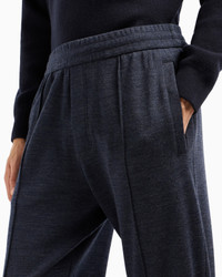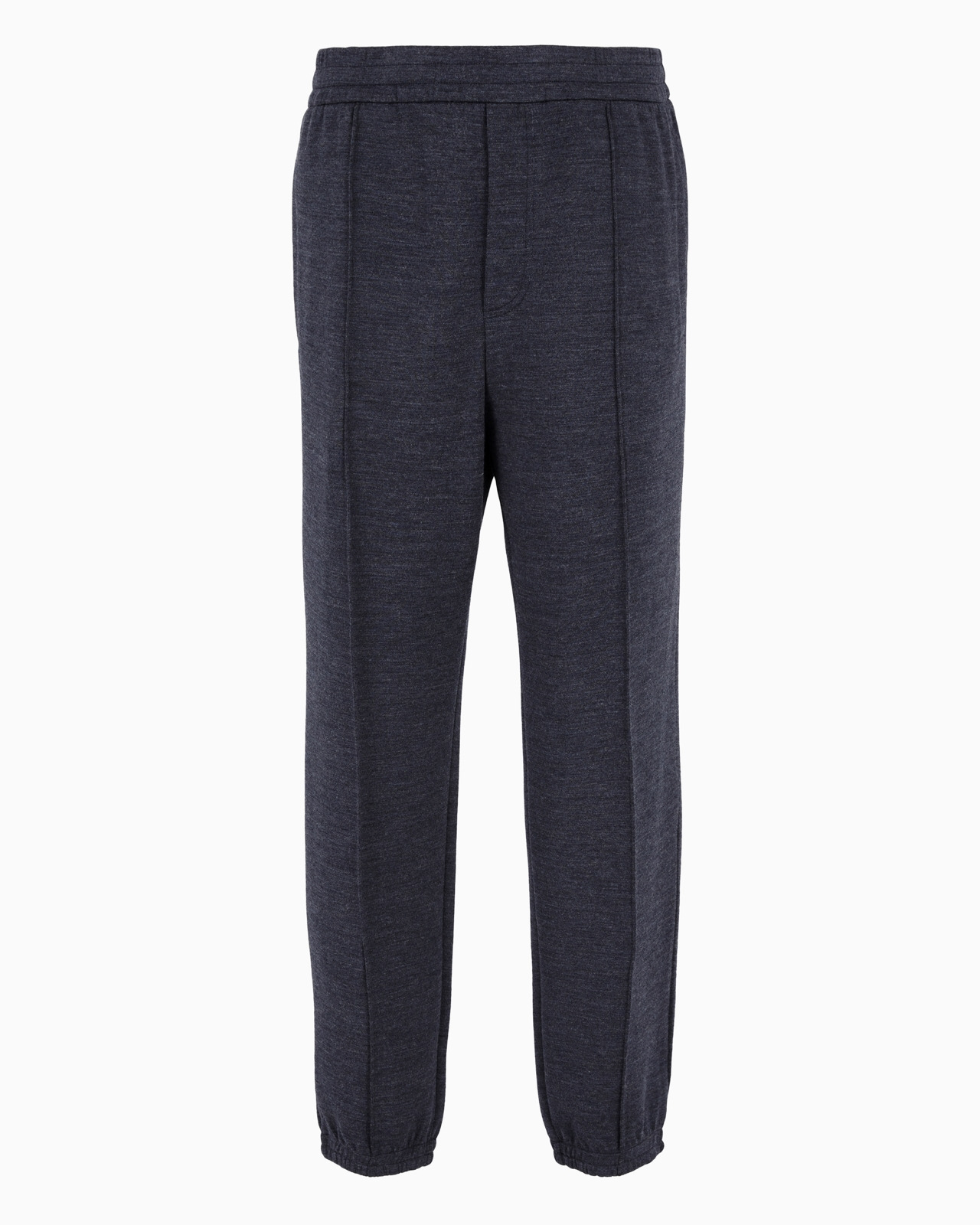 Drawstring joggers featuring an elasticated waist with internal drawstring and front ribs. The item belongs to this season’s Travel Essentials collection, the identity and personality of which are defined through a concept of travelling light. Travel in comfort with a dynamic wardrobe transformed through innovative cutting and materials: clothing and accessories designed for performance and leisure. The focus for the AW24 selection is wool yarn and its technical variations, created thanks to the refined blends of different wools, always alternated with nylon pieces. The capsule collection can also be worn in an urban setting and not just when travelling, highlighting the philosophy of the Emporio Armani man who’s always on the go. Product Code: EM000310AF108571OB008 Details Composition 52% Virgin Wool 28% Cotton 20% Polyester Jersey Elasticated waist Inner drawstring Side pockets Front ribs Drawstring hem Back welt pockets Collection logo patch Fitting The model is 188 cm tall and is wearing size 48/M (Italian Size)