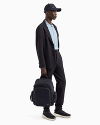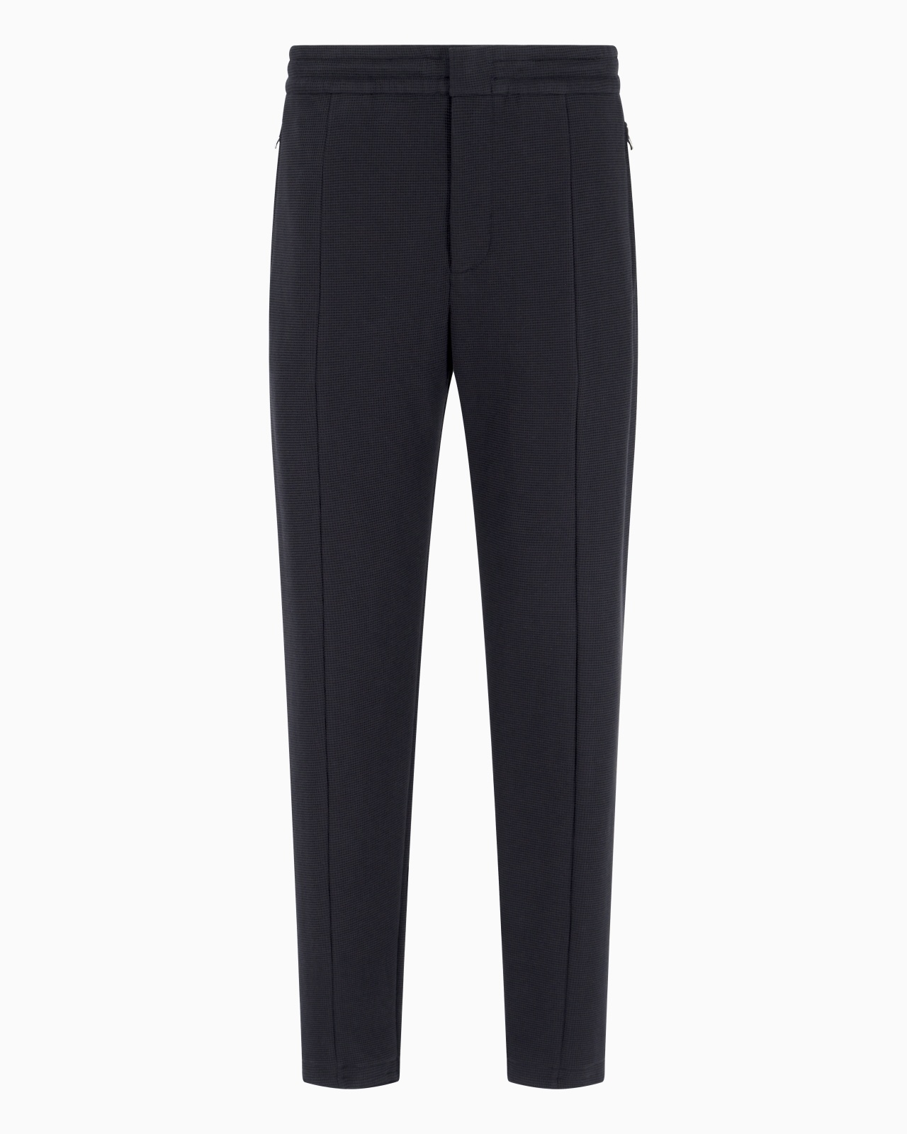 Trousers with internal drawstring at the waist, made from jersey featuring a waffle-effect weave. The item belongs to this season’s Travel Essentials collection, the identity and personality of which are defined through a concept of travelling light. Travel in comfort with a dynamic wardrobe transformed through innovative cutting and materials: clothing and accessories designed for performance and leisure. The SS25 selection is crafted for city living, centring the urban traveller who likes to explore both the world and their home city, highlighting the philosophy of the Emporio Armani man who is continuously on the move. Regular fit Jersey Waffle texture Interior drawstring waist Closure with zip, hook and back button Side pockets with zip Back welt pockets EA logo plate Product Code: EM000954AF13358UB118