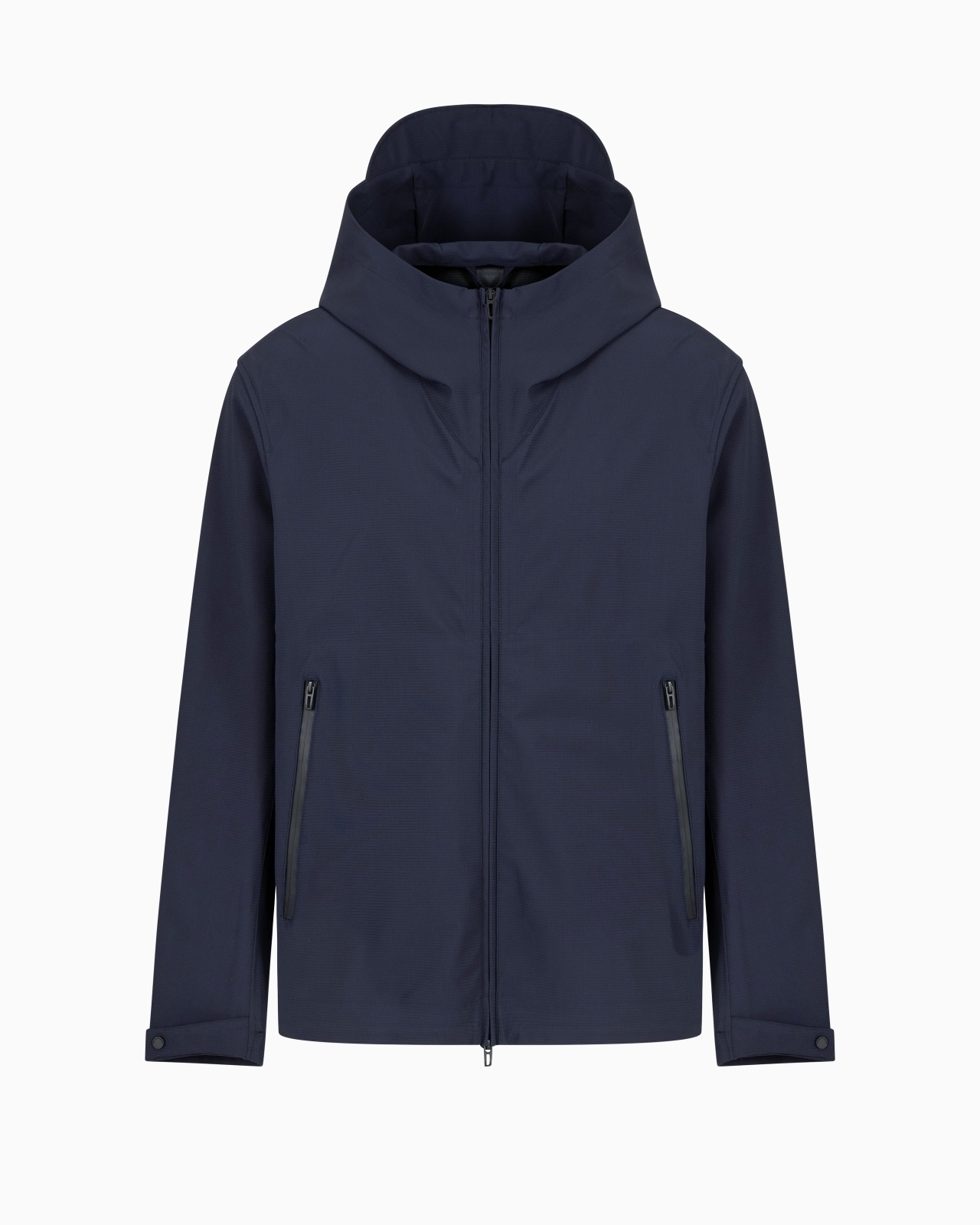 Full-zip stretch nylon blouson with hood, zip and heat-sealed seams. This style is also water-repellent, wind-proof, packable and includes a handy bag that makes it convenient to take with you when travelling. The handy inner pockets for your passport and mobile phone are designed for the perfect urban traveller. The item belongs to this season’s Travel Essentials collection, the identity and personality of which are defined through a concept of travelling light. Travel in comfort with a dynamic wardrobe transformed through innovative cutting and materials: clothing and accessories designed for performance and leisure. The SS25 selection is crafted for city living, centring the urban traveller who likes to explore both the world and their home city, highlighting the philosophy of the Emporio Armani man who is continuously on the move. Stretch nylon Water-repellent Windproof Hood with visor Full zip with heat-sealed tape Side pockets with heat-taped zips <nr>Long sleeves Cuffs with straps Collection logo patch on the back Zipped passport pocket Zipped phone pocket Product Code: EM000818AF13090UB118