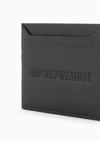 Leather card holder with debossed logo. A new line of accessories and small leather goods in tumbled leather, with clean, modern lines that affirm its sophisticated style. The ribbed construction typical of fine leather goods and the bags’ metal tab-snap closure make them perfect for daily professional life, for those who opt for functional accessories with classic yet playful appeal. Product Code: Y4R568YQ13X180648 Details Composition 100% Bovine leather Measurements: 10.3 x 8 cm Leather Tumbled finish Debossed logo Card pockets