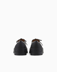 Derby shoes made of tumbled leather with toe and back details in grooved rubber. Footwear featuring a rounded shape and chunky rubber tread designed to resist abrasion and have excellent grip on any surface. Style and functionality that also ensure safety in any situation, whether in the mountains or the city: a perfect fusion of hiking style and modern urban appeal. Product Code: X4C665XF801100002 Details Composition 100% Calf-skin leather Leather upper Tumbled finish Rubber details Rounded toe Lace-up fastening Rubber soles Rubber tread Made in Italy