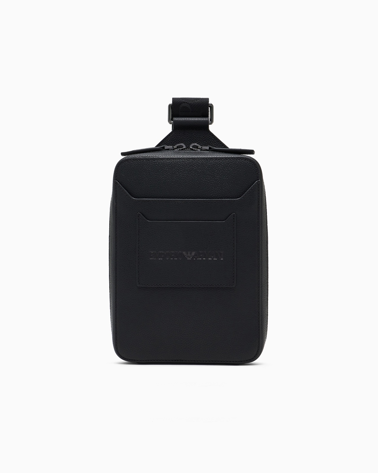 Leather one-shoulder mini backpack with logo webbing shoulder strap. The zip closure provides a 180° opening. A line of accessories and small leather goods in tumbled leather, with clean, modern lines that affirm its sophisticated style. The ribbed construction typical of fine leather goods and the bags’ metal tab-snap closure make them perfect for daily professional life, for those who opt for functional accessories with classic yet playful appeal. Measurements: 15 x 4 x 21 cm Leather Tumbled finish One shoulder Adjustable shoulder strap Zip closure Outer pockets Embossed logo Product Code: EM001613AF13788UC001