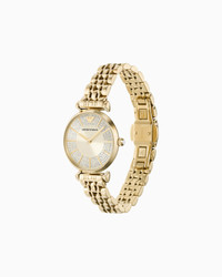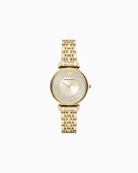 This 32mm watch features a cream pave sunray dial, two-hand movement and gold-tone stainless steel bracelet. Movement: Quartz/2 Hand Dial: Cream Case Size: 32mm Case Material: Stainless Steel Plating: Gold Bracelet: Gold Stainless Steel Atm: 3 Atm Product Code: AR11608NLPNLC