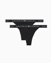 Pack containing two thongs with elasticated logo waistband. Fabric in certified organic cotton made from organically farmed natural fibres grown using techniques that meet strict social and environmental criteria. Product Code: 1645224F227100020 Details Composition 95% Cotton 5% Elastane The fabric is made of 95% organic cotton Two-pack Elasticated waist with logo Fitting The model is 178 cm tall and is wearing size 40/S (Italian Size)