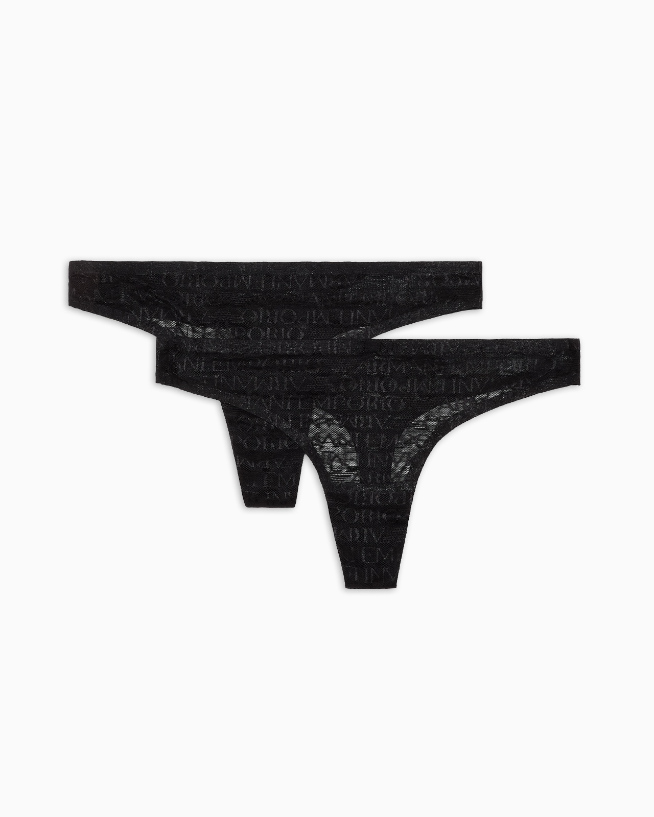 Two-pack of mesh thongs with all-over jacquard logo lettering. The main fabric made from certified recycled nylon, supporting circular production with a reduced environmental impact. Two-pack Jacquard logo lettering Product Code: EW000402AF10880MC005