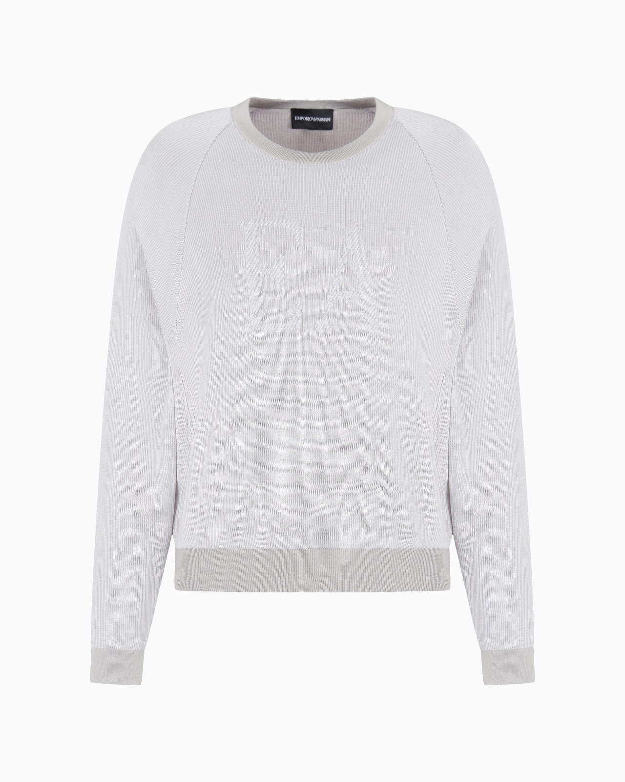 Crew-neck jumper with contrasting oversized logo on the front. The style features an all-over two-tone vertical fisherman’s rib and gives the piece an immediate cosy style that can be worn with many metropolitan outfits. Two-tone fisherman’s rib Crew neck Long raglan sleeves Contrasting, oversized logo Finished edges Product Code: EW000954AF15111M0001