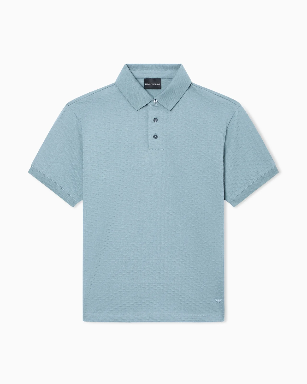 Pure cotton-jersey polo shirt featuring an all-over jacquard pattern that creates an original motif that adds prestige and personality to the style. This refined style can be worn anywhere and with anything. Regular fit Jersey Jacquard Polo-shirt collar Partial button opening Short sleeves Ribbed fabric edges Product Code: EM001295AF10762F9095