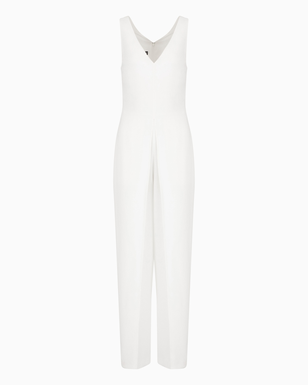 Sleeveless jumpsuit with a deep V neck, enhanced by the refined technical cady which, fluid and lightweight, delicately skims over the skin, offering an impeccable look for any silhouette. Tech cady V neck Sleeveless Back concealed zip Inner lining for the top only Product Code: EW000931AF10206U0005