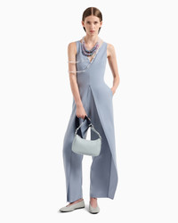 Sleeveless jumpsuit with a deep V neck, enhanced by the refined technical cady which, fluid and lightweight, delicately skims over the skin, offering an impeccable look for any silhouette. Product Code: EW000931AF102061U8061 Details Composition 100% Polyester Tech cady V neck Sleeveless Back concealed zip Inner lining for the top only Fitting The model is 178 cm tall and is wearing size 40/S (Italian Size)