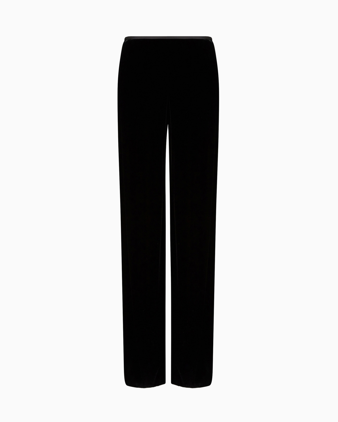 Viscose and cupro-blend velvet palazzo trousers with shiny satin trim at the waist. Sometimes, minimalistic elegance is all you need to make a unique, distinctive high-end garment. The piece belongs to the Essentials selection, the Emporio Armani capsule collection that makes a statement of enduring style: both elegant and practical, it works for numerous combinations on a wide array of occasions. The colour palette includes the brand’s characteristic neutral shades, combined with a minimalist design to create a series of key pieces for the female wardrobe. Product Code: 8N2P012NXYZ10999 Details Composition 65% Viscose 35% Cupro Velvet Palazzo cut Satin piped waist Concealed side zip Fitting The model is 178 cm tall and is wearing size 40/S (Italian Size)