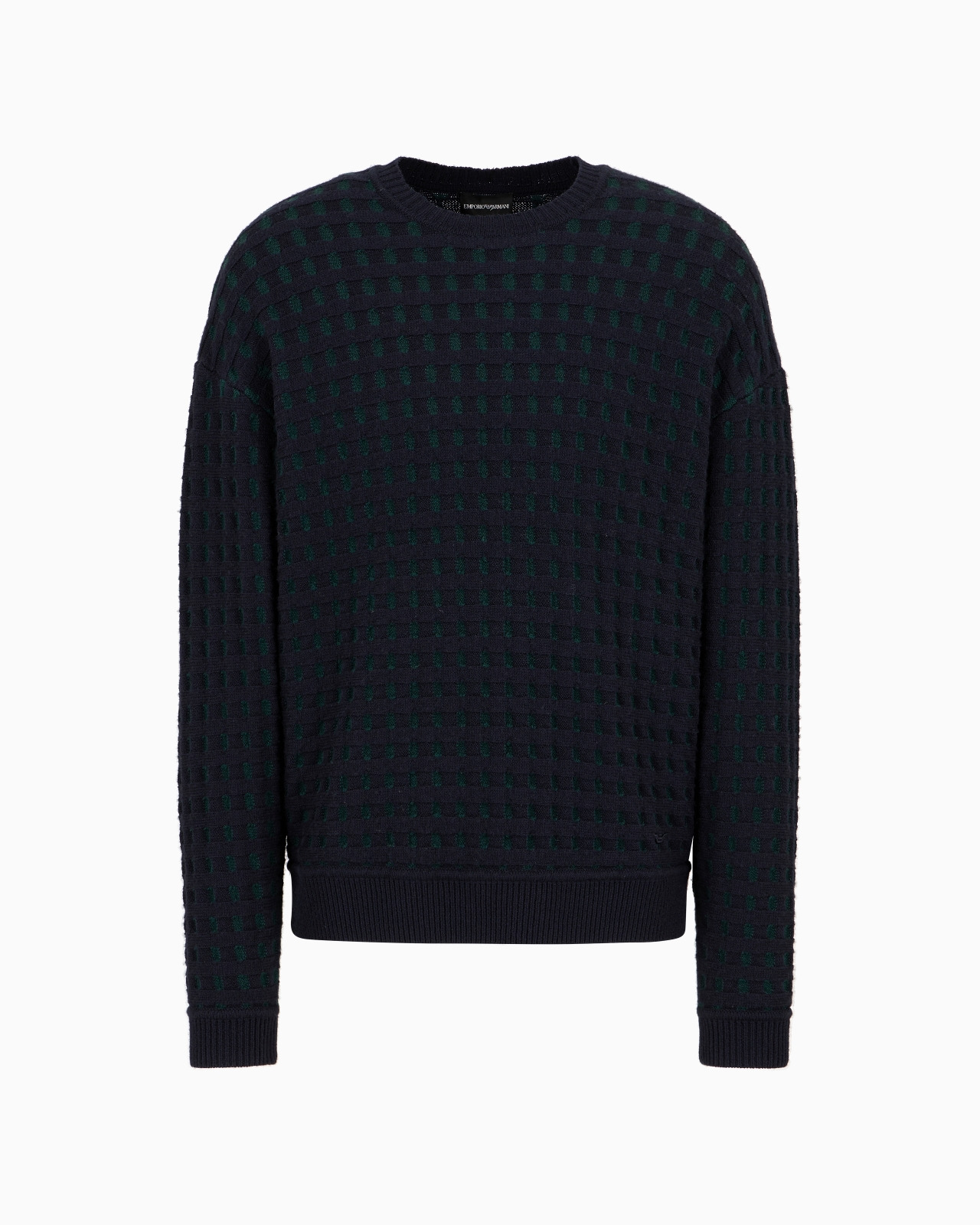 Virgin wool jumper with embossed jacquard motif