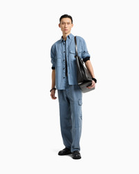 Crew-neck jumper made of pure virgin wool with a particularly tactile texture, with an embossed jacquard pattern that creates a natural intersection of structured and sophisticated motifs all over. Fineness: 14 Jacquard Embossed pattern Crew neck Long sleeves Micro-eagle embroidered at the left hem Rib-knit cuffs and hem Product Code: EM002196AF13851FB057