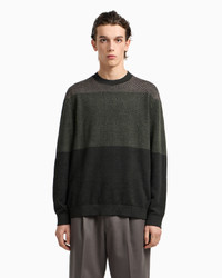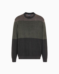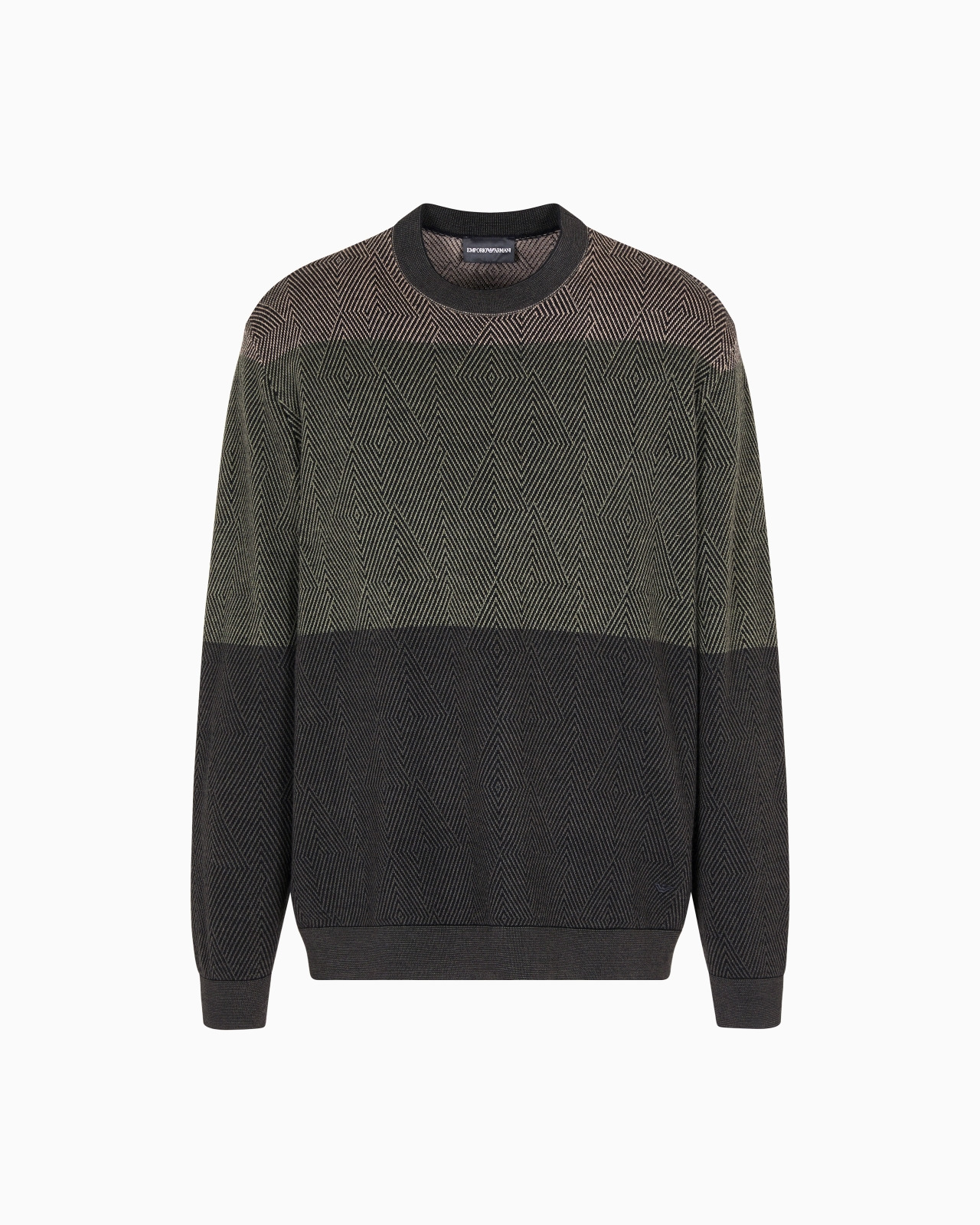 Crew-neck jumper made of pure virgin wool, featuring a dense jacquard with an op-art motif that creates a succession of intersecting diamonds. The colour-blocked effect adds a modern touch. Fineness: 16 Micro jacquard Crew neck Long sleeves Finished edges Product Code: EM002432AF18118F7046