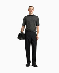 Crew-neck jumper made of pure virgin wool, featuring an all-over jacquard that creates a two-tone micro motif with an op-art effect. Fineness: 14 Jacquard motif Short sleeves Rib-knit cuffs and hem Micro eagle embroidered on the left hem Product Code: EM003385AF14199FC027