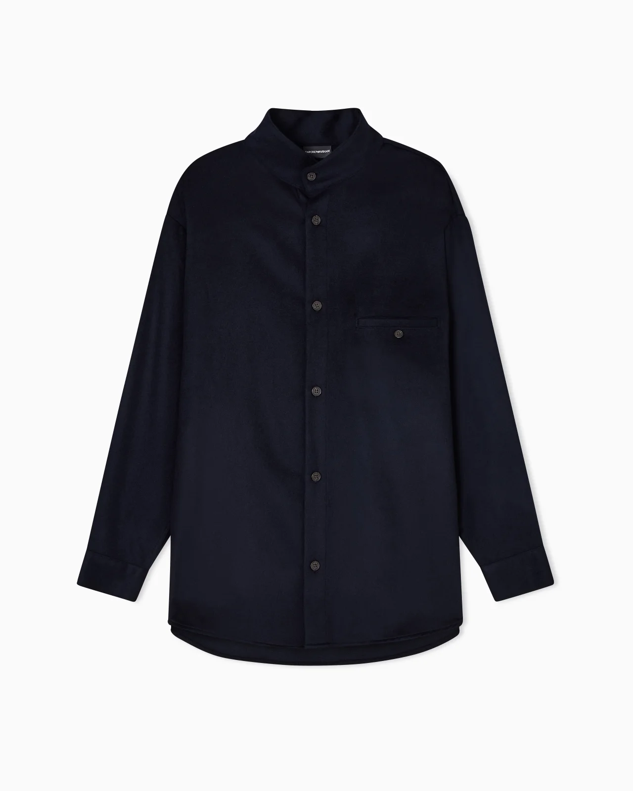 Shirt with an iconic guru collar in an oversized fit. Made from a cosy virgin wool fabric with a small percentage of cashmere that makes it feel softer. Oversized fit Guru collar Front buttoning Long sleeves Single-buttoned cuffs Welt pocket with button Back yoke Product Code: EM004176AF17835UB118