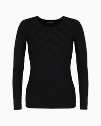 Viscose-blend crew-neck jumper. The striped knit and purl construction creates a unique ribbed weave, enhanced by the plated graphic motif on the top. Product Code: 6D2MTB2M09Z10999 Details Composition 65% Viscose 35% Polyamide Wide-spaced ribs Plated motif Crew neck Long sleeves Fitting The model is 178 cm tall and is wearing size 40/S (Italian Size)