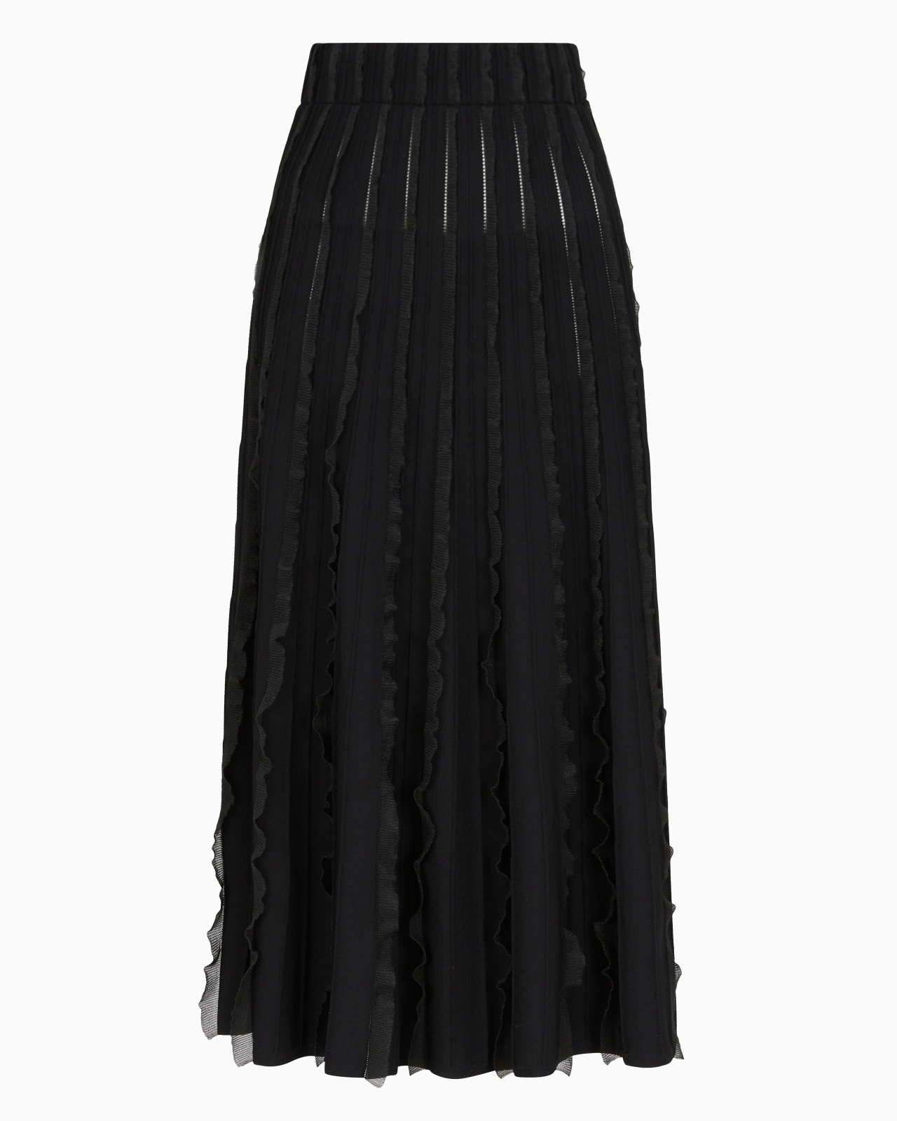 Long skirt made from a plain-knit viscose blend. The pleated style with a slightly flared hem is embellished with voluminous all-over ruches making it ultra-feminine and adding movement. Length: 87 cm Viscose-blend jumper Elasticated waist Ruche detail Flared hem Product Code: EW001445AF15113UC001
