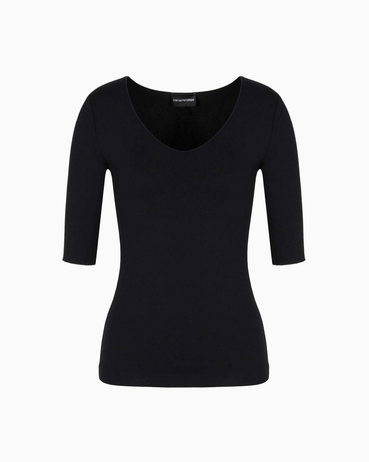 Women’s jumper in viscose stretch jersey with three-quarter length sleeves that provides an impeccable look on a wide array of occasions. The naturally clingy viscose is enhanced by the plunging V neck. The piece belongs to the Essentials selection, the Emporio Armani capsule collection that makes a statement of enduring style: both elegant and practical, it works for numerous combinations on a wide array of occasions. The colour palette includes the brand’s characteristic neutral shades, combined with a minimalist design to create a series of key pieces for the female wardrobe. Product Code: 8N2M8I2JGDZ10999 Details Composition 96% Viscose 4% Elastane Stretch jersey V neck Three-quarter sleeves Fitting The model is 178 cm tall and is wearing size 40/S (Italian Size)