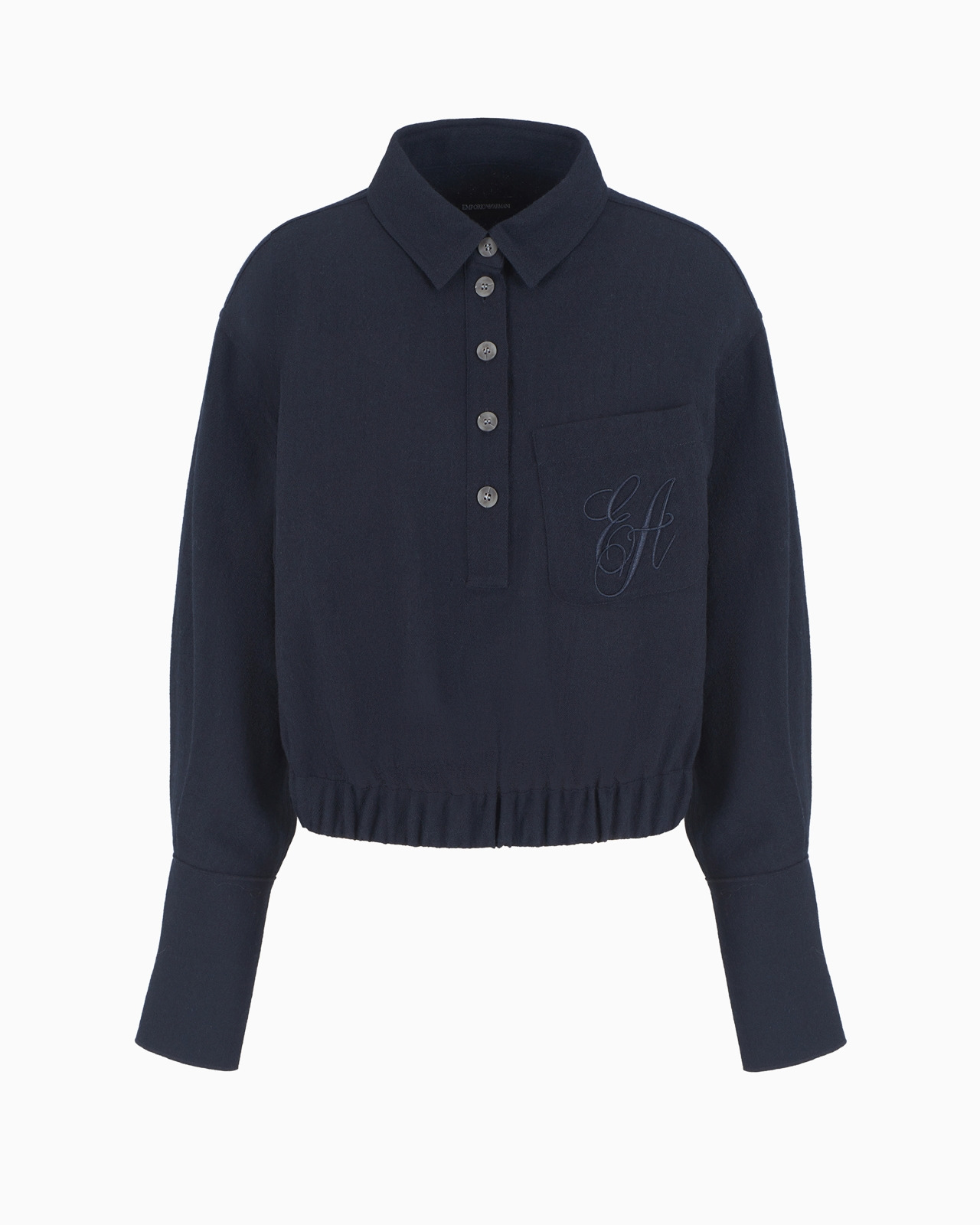 Washed wool crêpe shirt with a polo collar and EA signature embroidery