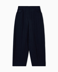 Oval-leg trousers with an elasticated waist at the back and the iconic EA signature logo embroidered on the coin pocket. Made from washed pure virgin wool. A versatile style that adapts to a wide array of occasions. Fastening with zip, press stud and back button Elasticated waist at the back Oval leg Side pockets Coin pocket with EA logo embroidery Back patch pockets Product Code: EW002727TE17116UB115