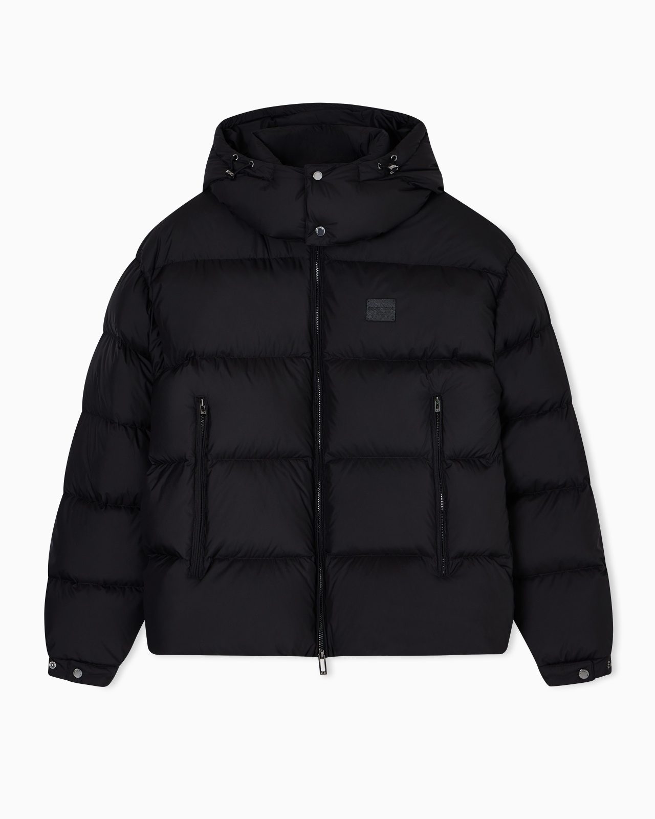 Quilted ultra-fine ripstop nylon down jacket with detachable hood and full-zip fastening. The 100% polyester fabric combines its extremely light weight with excellent resistance and durability, thanks to the ripstop structure of the texture. All these characteristics, together with its water-repellent properties, make it a suitable piece for multiple situations, ensuring comfort and performance in different weather conditions. Technical fabric Water-repellent Ultra lightweight Genuine down padding Hood with pull tabs Full-zip closure Front logo patch Side pockets with zip Chenille pocket lining Long sleeves Press studs on cuffs Hem with inner pulls Product Code: EM003050AF18231UC001