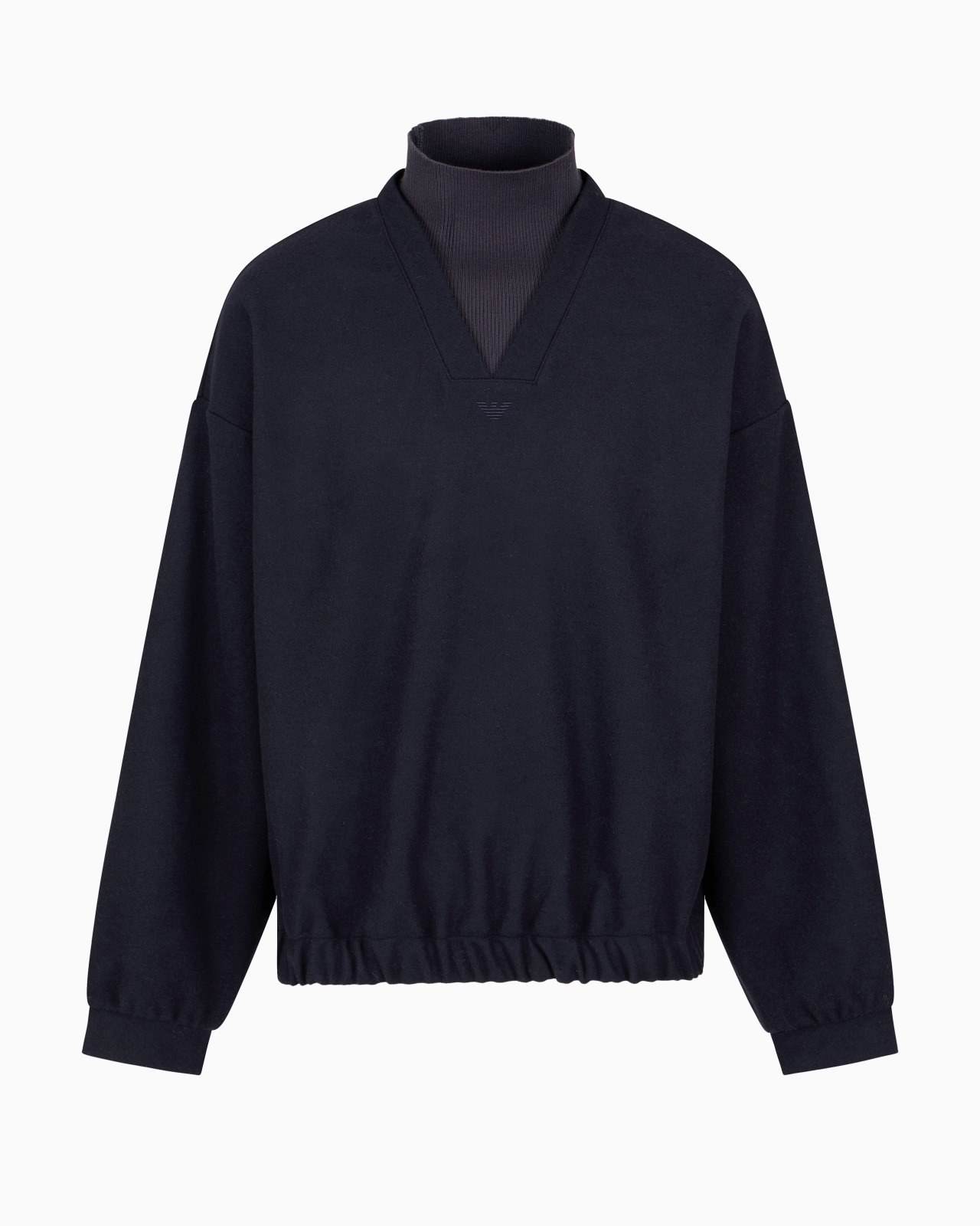 WOOL CLOTH SWEATSHIRT WITH KNIT MOCK NECK