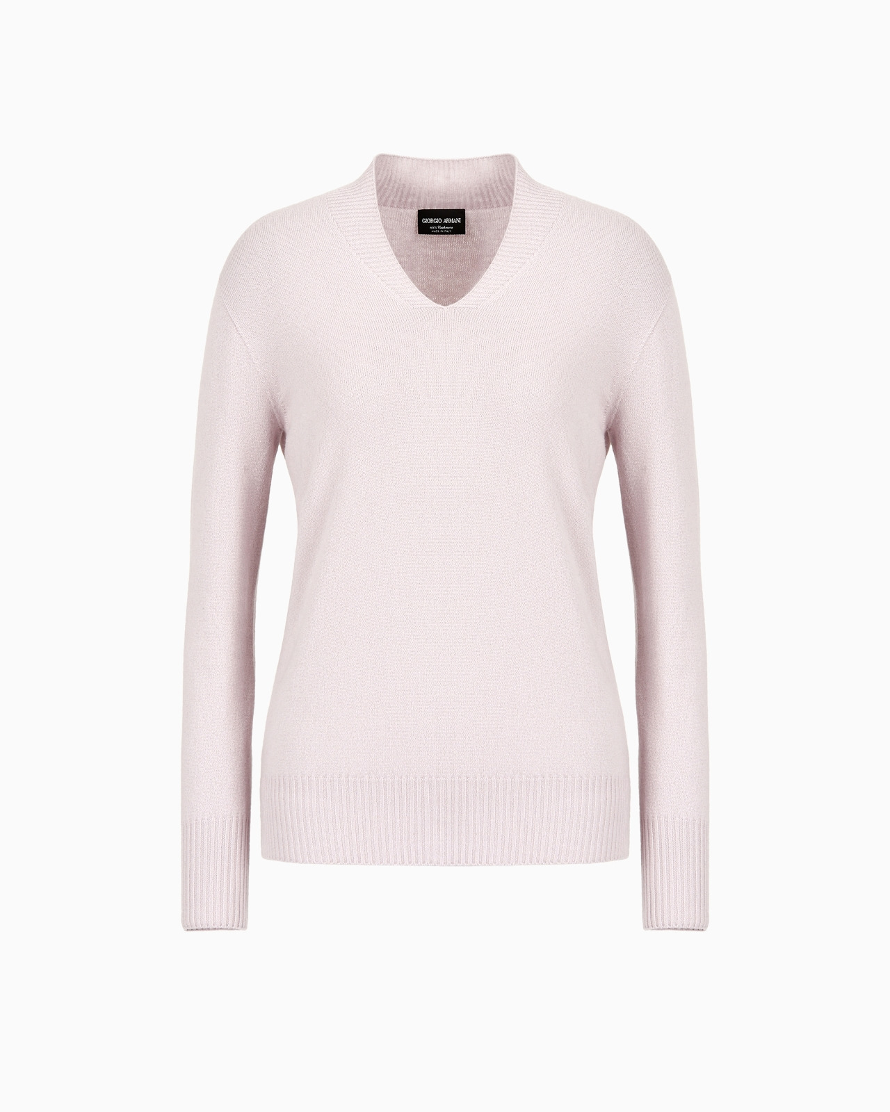 This long-sleeved jumper is made from extremely luxurious, warm Alashan cashmere, making it a must-have of the winter wardrobe. Perfect for countless occasions, it adds a distinctive touch of elegant minimalism to a wide variety of outfits. Perfect with skirts and trousers. Product Code: 6KAM15AM88Z1U40Q Details Composition 100% Cashmere Fineness: 5 Seamless with Alashan yarn V-neck Made in Italy