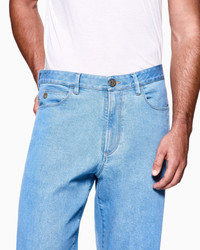 Loose-fit five-pocket trousers made from organically grown cotton denim and modal, a fabric that feels cosy and comfortable. The style is defined by a zip-and-button closure, rounded side slant pockets and back patch pockets. An offering designed to accompany casual, effortless looks, perfect for teaming with the collection T-shirts and shirt jackets. Fabric: 86% organically grown cotton Waistband with belt loops Button and zip closure Two front rounded pockets One small front pocket Two back patch pockets Made in Italy Product Code: GM002034AF20851MB003