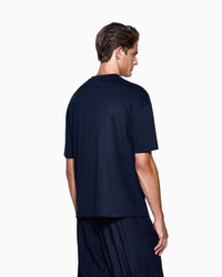 Crew-neck T-shirt made from luxury organic cotton interlock with a cosy feel. The matching embroidered GA logo on the chest makes the clean, essential style recognisable. A versatile garment, synonymous with comfort and impeccable style. The piece is part of the Holiday selection, which plays with an elegant colour palette that offers shades of grey, onyx and notes of blue. Nuances that combine with exquisite fabrics and fluid shapes that express a great sense of modernity in perfect Giorgio Armani style. Fabric: 100% organically-grown cotton Crew neck Short sleeves Matching, embroidered GA shield logo Made in Italy Product Code: GM003351TE10333U8139