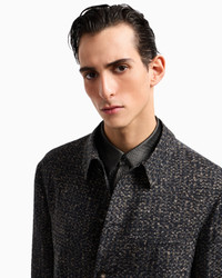 Fluid, slinky lines for this single-breasted jacket in cupro made from recycled cotton by-products, embellished with a knit-effect print. With a shirt collar, exposed button placket and flap pockets, it can be paired with the matching trousers to create a sophisticated total look that exudes an effortless, relaxed style. An offering designed to dress without constraints and wear on various occasions in style. Fabric: 100% cupro from recycled cotton by-products Single-breasted jacket Shirt collar Five-button, single-breasted closure Breast welt pocket Two front flap pockets Buttons at the sleeve hem Unlined Length: 78 cm Made in Italy Product Code: GM002029TE17980M8136