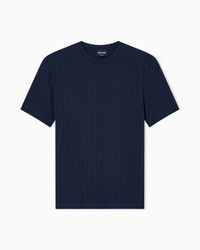 The monochromatic geometric jacquard motif distinguishes this short-sleeved crew-neck T-shirt made from a viscose blend, which includes viscose fibres sourced from responsibly-managed forests and stretch cashmere. This regular-fit style is defined by its minimalism and versatility, perfect for creating looks with a relaxed, effortless allure. Fabric: 62% viscose from responsible forestry Crew neck Short sleeves Made in Italy Product Code: GM001991AF20301U8139