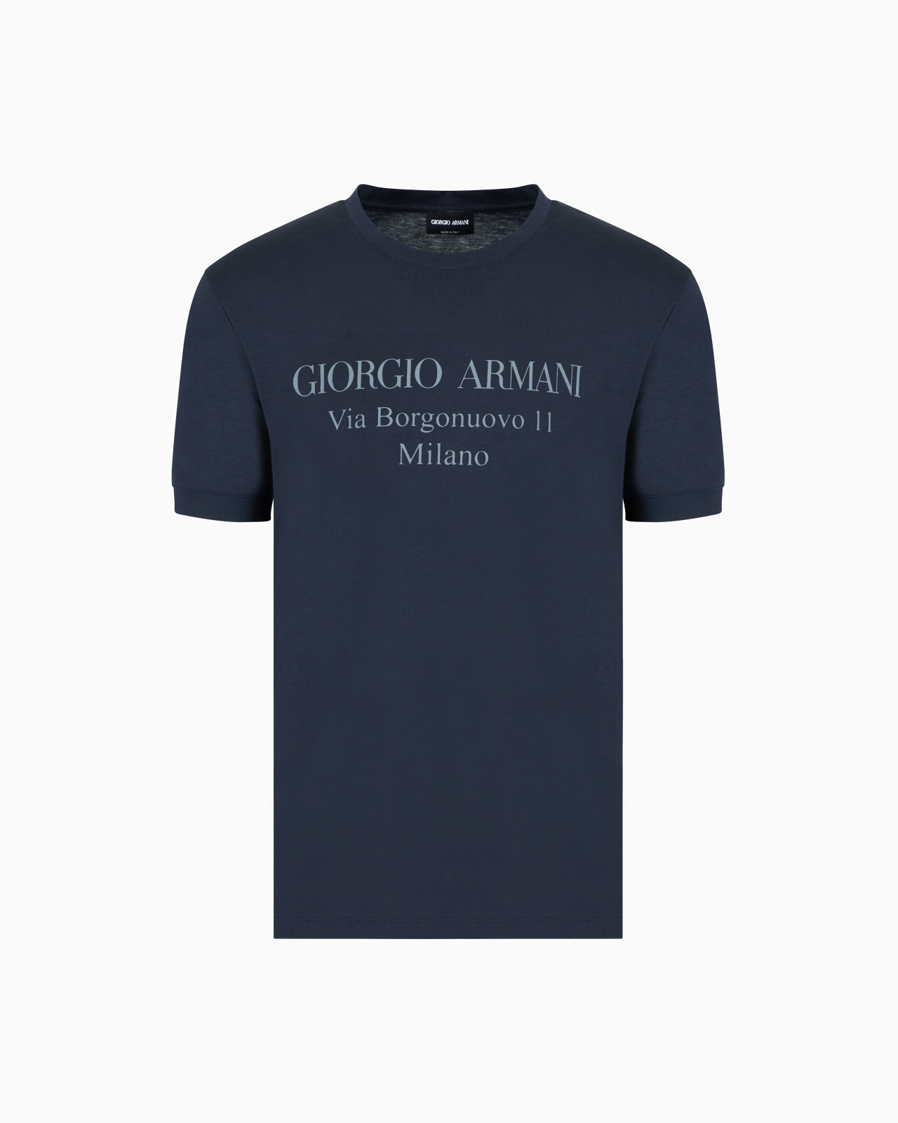 A symbol of casualwear, here the T-shirt is transformed into an exclusive, refined garment. Made from smooth cotton jersey, this style is embellished with the brand’s exclusive street address. Product Code: 3GST57SJMCZ1UBWF Details Composition 100% Cotton Crew neck Short sleeves Rolled, seamless collar and cuffs Contrasting water-print logo on the chest Made in Italy Fitting The model is 188 cm tall and is wearing size 48 / M