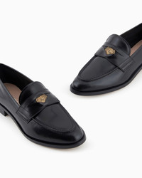 Elegant brushed leather loafers with a typically masculine and deconstructed aesthetic, typical of the essence of Armani. The style, with a topstitched apron, is embellished with the logo penny detail and, thanks to the completely unlined upper, ensures a comfortable, relaxed fit. Perfect for everyday looks. Product Code: GW000279AF101291UC001 Details Composition 100% Calf-skin leather Topstitched apron Decorative penny loafers with Giorgio Armani logo in an antique gold-finish metal Leather insoles Leather soles with rubber inserts on the heel Heel height: 1.5 cm Made in Italy