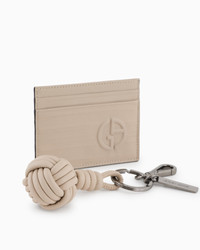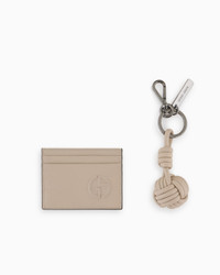 Gift box consisting of a practical card holder made of pleated nappa leather, embellished with an embossed GA logo, and a keyring with clip made of braided nappa leather. Pleated nappa-leather card holder Four credit card slots One central compartment Measurements: 10.5 x 0.2 x 8 cm Woven nappa-leather keyring Metal ring and clip Made in Italy Product Code: GM001504AF14832U6209