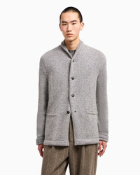 Distinctive cardigan jacket made from cosy, plain-knit cashmere and cotton. The relaxed, effortless style features a slightly stand collar with a V neck, exposed button placket and two front pockets. A warm, comfortable offering designed to complete informal looks. Fineness: 5 Slightly stand collar with V neckline Single-breasted closure with four buttons Two front patch pockets Stitched turn-up at the cuff Length: 74 cm Made in Italy Product Code: GM002584AF20853F8012