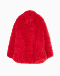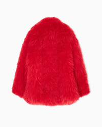 Wide and relaxed volumes for this fur blouson with a concealed front closure. The style features a silk chiffon base topped with fine cashmere fur that adds movement and an airy lightness to the piece. A style that does not go unnoticed, with unmistakable feminine elegance. The piece is part of the Holiday selection, which ranges from warmer to cooler tones with shades of coral red and grey, colours that create a refined, evergreen palette. The collection offers fluid shapes and smooth fabrics for a touch of modernity that never compromises on classic elegance. Slightly upright collar Long sleeves Closure with three small hooks covered in matching thread Oversized construction Silk habotai lining Length: 75 cm Made in Italy Product Code: GW003147AF24741U5005