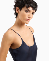 Clean shape, premium materials. Top in simple, classic lines made from soft silk charmeuse. Thin shoulder straps and round neckline. Product Code: 8CHCKZ18TZ1361UBUL Details Composition 100% Silk Crepe Wide neckline Solid color Sleeveless