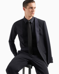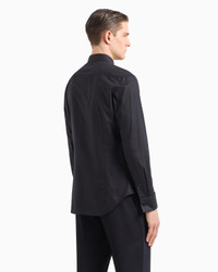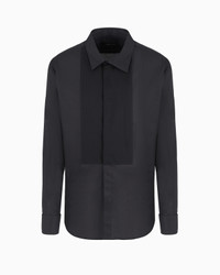 This slim-fit shirt is made from luxury cotton twill. Its unique, large, front faced placket evokes a tuxedo shirt plastron. A style that perfectly completes elegant evening looks. Slim fit French collar with collar stays Fastened with mother-of-pearl buttons Pleated bib Back yoke Back darts French seams Double cuffs Made in Italy Product Code: GM000477TE10820MC023